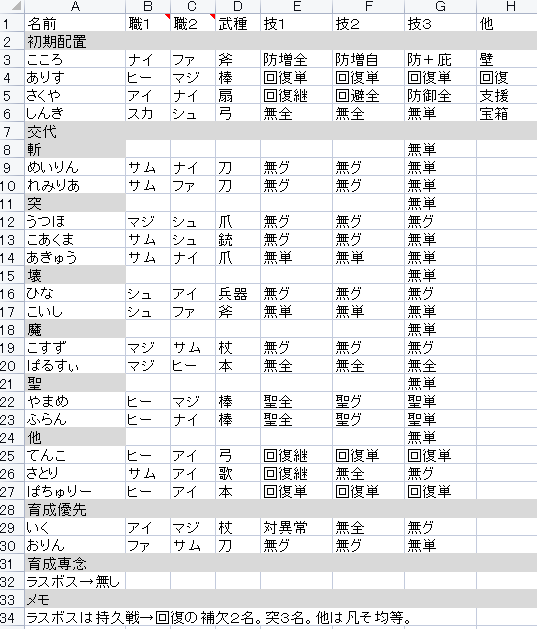 ■敵の情報や対策に関しては、メモ帳で「○○以外に強いの居るから○○属性2名確保」とか、「○○属性は多分不要、1めいでいい」とか書く程度でいいでR